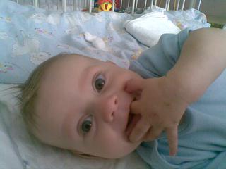 My sme od 12-ho do 20-ho boli v nemocici. V stredu v noci malý začal vracať, ráno sme šli k pediatričke, teplotku mal iba zvýšenú 37,3. Pichla mu injekciu proti zvracaniu. Doma ale dostal nežiaduci účinok po injekcii - hrozne plakal, hlavičku mu vytáčalo a taktiež aj očká do hora. No bol to horor. Neskutočne som sa o neho bála. Nedal sa vôbec utíšiť, bol stále v kŕči. Tak sme znova utekali k lekárovi, podľa výzoru som videla, že aj mudr. je nejaká naplašená. Poslala nás na neurologiu, kde nám povedali, že sa vyvíja primerane a že to čo robil je asi nežiaduci účinok po injekcii proti zvracaniu. Ale odporučila nás aj tak na detské oddelenie do nemocnice, lebo malý nechcel nič piť, tak aby nebol celkom dehydrovaný.