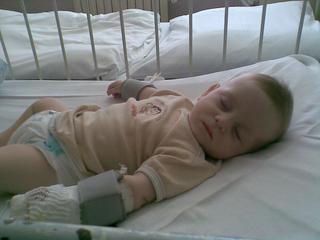 Tak sme skončili v nemocke, tu nás čakali infúzie, musel byť uviazaný o postieľku ručičkami aby si nevytrhol sondu...hrozne plakal...a ja s nim ☹ .