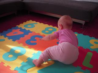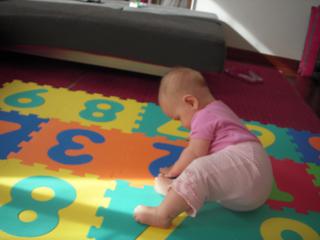 na 4 sa uz dava, pohupuje sa a hadze dopredu este nevie co ma robit s ruckami a nozkami pri tom ale vidim ze kazdy den uz v tej polohy vydrzi dlhsie a dlhsie aj rucky uz ma take silnejsie 😉