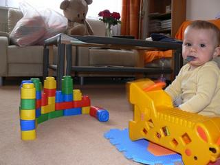 my stale krmime v kresielku, kedze este sam nesedi, ale uz aj tam sa taha do sedu, ale to len tak, ze sa pritiahne a pridrza rukami. Stale ho opieram naspat, ale pisti. To iste v kociku 😠 Ale uz sa zacal davat na bok, tak hadam do par tyzdnov pride na to, ze sa z toho da aj posadit 🙂