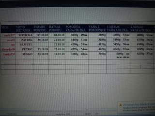 Tak tu je tabulka, zatial udaje co ste mi baby poslali. Tabulku mi ide iba pridat v JPEG a tak aspon takto. Ak ma este niekto dalsi zaujem, poslite info do IP 😉