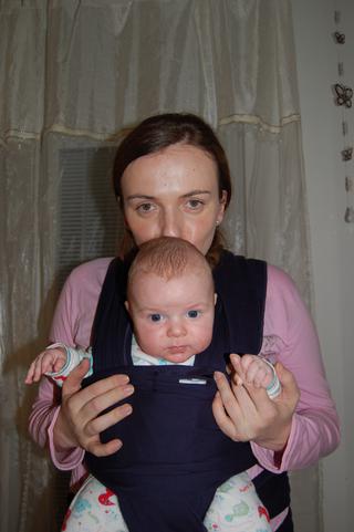 Ahojte dievcatka,pekny tyzden Vam prajem..... 🙂 Mame novinku po vikende. Kamaratka mi pozicala babysatku a skusali sme sa nosit cez vikend. A kedze Misko musi vsetko vidiet, tak som sa ju naucila viazat, tak aby videl dopredu, a predstavte si jemu sa tam paci....!!!!! Vydrzi tam tak pol hodinku, ale predsa, aj to je uspech. Tak sa strasne tesim...... 🙂 Vid fotos..... 😉 Urcite to poznate , neda sa stale krpca nosit na rukach..... 😉