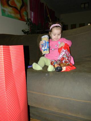 pridavam vam sem moju krasulku, ako si rano vybalovala z obrovskej tasky mikulasa 🙂 hoci teda este nechapala o co ide.. no a milka je zrejme jej oblubena znacka 🙂