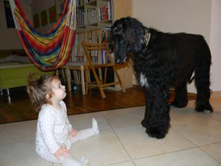 Baby, a keby ste videli, ako sa mala Ninka ku Baxovi natrcala tvarickou zoci voci, ako by mu isla dat pusu 😀 Ale teda ked uz bola par cm od jeho nosu, tak cakala odozvu a bax nic 😀 nastastie jej nedal jazyckovu. Ale ani neuhol, trpezlivo cakal, co bude hehe