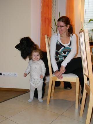 Psikovi treba hlavne hned od zaciatku nastolit pravidla a hranice a uz male miminko "postavit" na post jedneho z vodcv smecky, teda aby pes bol jednoznacne hierarchicky pod nim 😉 Tiez aby sa nestalo, ze si psik dieta "adoptuje", to je tiez nezdravy vstah. Niektori to zvladaju lahko, ini horsie, ale urcite to pojde. Moj Bax je absolutne submisivny typ psa a sam si vybera tie najspodnejsie priecky v hierarchii a keby mame doma zajacika, tak asi este aj ten mu sefuje, takze nepredpokladam absolutne komplikacie. A teraz ako som ho sledovala s maxarinou Ninou, ktoru videl prvykrat v zivote, som o tom este viac presvedcena.