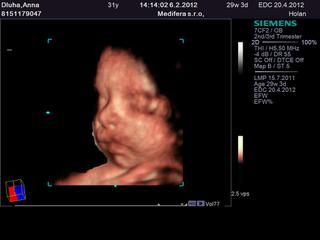 Ja som dnes bola na poradni, tak akozeeee.. v podstate nesiem nie moc dobre spravy. Maly je KP, takze este ma 3 tyzdne na otocenie sa, inak je mala sanca, ze sa otoci. Pozerala som si do knizky a doteraz bol hlavou dole, takze sa mi musel otocit teraz niekedy 😖 .. dr mi potvrdil chlapceka, uz treti dr., tak asi to chlapcek teda aj bude.. mam aj foto guliek.