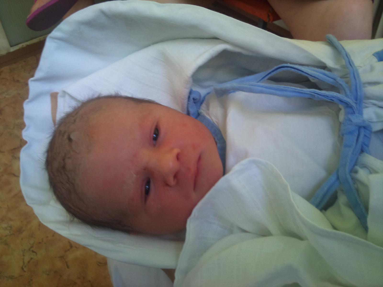 Mário sa poponáhľal na svet o 16 dní skôr, 1.8. som ho prvýkrát držala v náručí..pôrod 50min, kontrakcie mi museli vyvolať dvoma dávkami oxitocínu. celkovo som ešte doteraz z toho pekla zhrozená.. 3500g, 52cm.. mamina šťastná!!! a takto sme vyzerali na druhý deň: