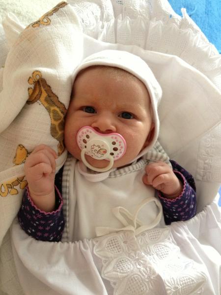 Ahojte. Dnes sme mali aj my poradnu, mame 1 mesiac, 58,5cm a 5060g. A takto mi mama zapchala usta, ked som nechcela prestat kricat a ani prsnik nepomahal, preto ten skaredy pohlad 🙂.