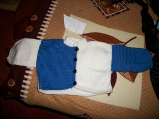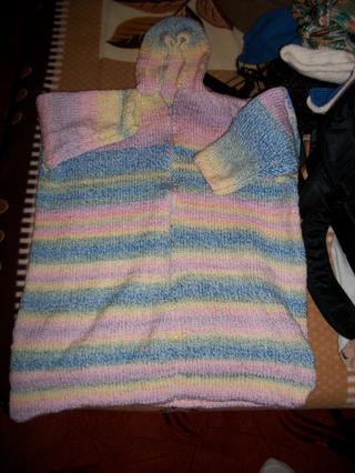 A jinak včera tu byla tchýně a donesla mi nějaké věcičky pro malou. Tu čepičku jsem si koupila v Polsku na burze. Taky jsem Vám fotla dva svetříky, co jsem pletla a spací pytel, který mi upletla moje mamka. Zdá se mi hezčí než v obchodě... 😉