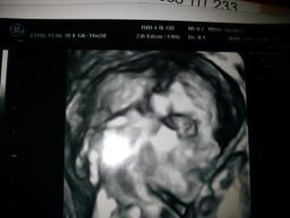 caute baby, tak som doma z poradn, babulka je v poriadku ma 357g a kopu inych udajov ktore ani neviem co znamenaju, ale vsetko je v poriadku, vraj je trosticku dlhsia, ale inak ok..potvrdil sa nam aj termin, takze sa to uz vraj nebude menit asi velmi...tatinko ma radost, bude mat krasny darcek k meninam /martin/.. mala bola so mnou tiez ale na babatko vyhlasila, ze je divna 😀 😀 ze ujo doktor ja chcem peknu sestricu, toto je divne 😀 😀..vikinka sa nam totiz skryvala a vobec sa na nas nechcela usmiat, otacala hlavicku k placente 😒 potom sa nam ju podarilo zobudit tak najlepsie co sa nam podarilo odfotit prikladam..je to asi desiaty pokus 😝