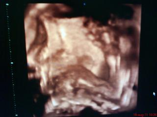ahojte,som doma z poradne 😉 Vsetko je ok,mala sa ma dobre.Lekar nemal v plane robit mi utz,no prehovorila som ho.Ved ja sa na to tesim cely mesiac!No nakoniec som utz ani nemusela absolvovat,lebo Simuska vobec nespolupracovala.Bola otocena chrbtom a oboma rukami si schovavala hlavicku.Mam fotku,no ja sama mam problem identifikovat co je co 😠 Mala vazi 1107g,je KP 😲 co ma trosku zacina znepokojovat....No,ved ma este cas sa otocit.