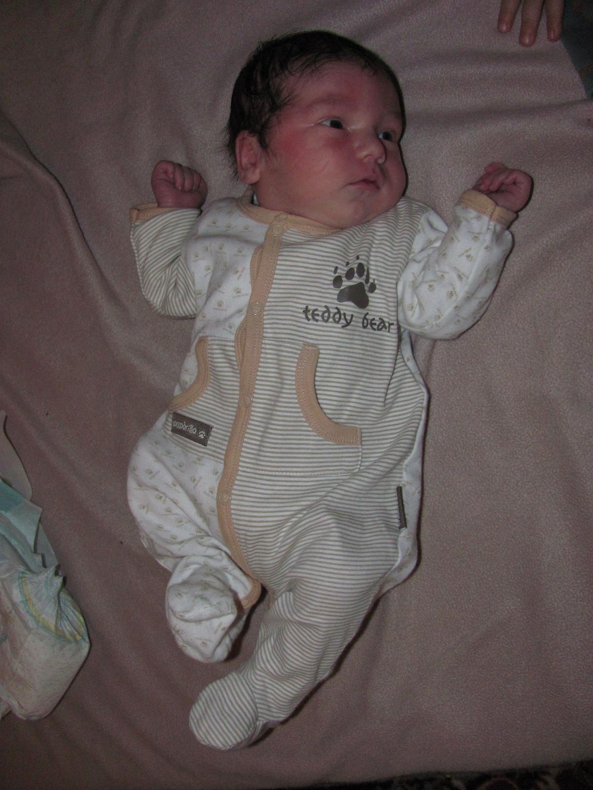 ...volam sa Risko, narodil som sa 31.10. sekciou s chlapskymi mierami 4200g, 54cm a stihol som sa povozit uz aj na sanitke.