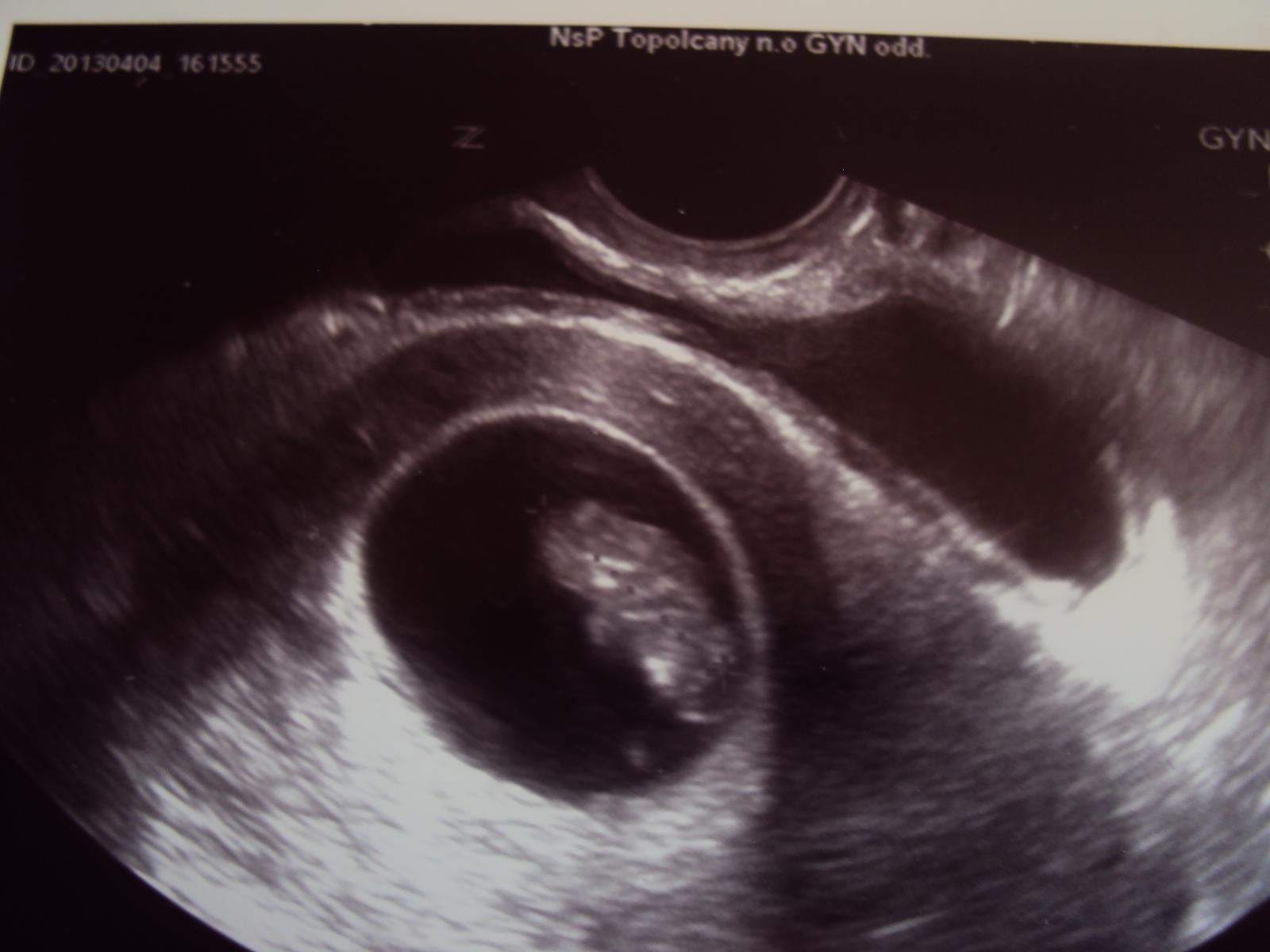 Ahojte, práve som sa vrátila zo sona, všetko je v poriadku, tak sa velmi teším🙂 Srdiečko krásne bije aj mi ho ukázal ako nádherne bije aby som bola spokojná lebo mi dr. povedal, že od strachu som aj dýchať prestala 🙂 Dr. nameral 1,97 cm, ale vravel že sa mu to velmi zle meralo lebo ho nevedel zachytiť, lebo sa drobček hmýril ako zdivočený 😀 Moja dcera je neskutočne štastná lekár ju zavolal dnu na sono a všetko jej ukazoval, tak má užasný zážitok a urobil jej aj dalšiu fotečku.