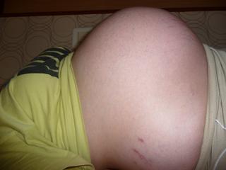 Baby,ako tak pozerám vaše včerajšie fotky s bruškami,tak vám aj ja jednu prihodím. Ja mám teda riadne brušisko oproti vám 🙂 .A až mi je ľúto,keď vidím aké krásne brušká bez strií máte,a je som potrhaná až hrôza, a to som sa poctivo krémovala od tretieho mesiaca každučký jeden deň-fňuk, fňuk.Ale čo pre toho svojho drobčeka neurobím,snáď mi až tak z krásy neubudne, veď ten môj chlap ma bude ľúbiť aj tak. 😀