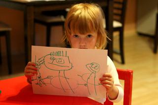 a tu som dala fotku malej a jej kresbicky, taketo super postavicky uz kresli 🙂 a vsimnite si ja som celkom vlavo a este aj braceka v brusku mam nakresleneho 😀 😀 😀 sice to asi nevidno tak detailne, mala fotka....