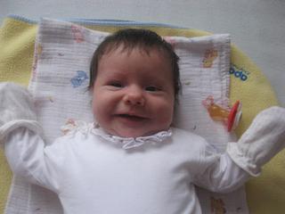 ahojte....mame za sebou poradnu, mala bude mat v sobotu dva mesiaciky a zatial sme pribrali 1540g, takze teraz ma 4450g a 57 cm....este je vonku s priatelovou mamou a ja tlacim do seba parizsky salat....nemam navarene, proste nestiham!!!!