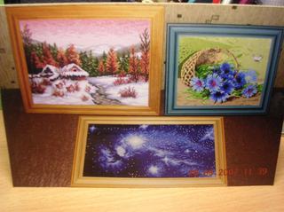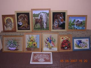 akurat si tu triedim fotky na vyvolanie malej a nasla som aj toto....ale pred 6.rokmi som zacala vysivat, ked mi operovali koleno a nemala som co robit.....mozno je to staromodne, ale mne sa to paci. ako sme sa pred 2.rokmi prestahovali, tak uz si ich nemozem dat na stenu, lebo mame prerobeny na modernejsie byt a nehodi sa to sem......mozno, ked kupime nejaku malu chalupku na vikendy, tak si ich tam zavesim.