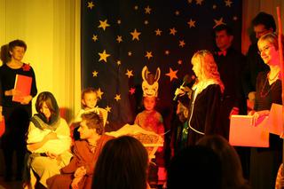 baby...v sobotu večer sme mali v našom kostole benefičný večer pre sociálne slabšie rodiny s deťmi...a ja,mm a Emmka sme hrali Máriu, Jozefa a Ježiška (ja viem, že mám dcérku, ale to nevadí 😀 ) no a malinká krásne vydržala skoro hodinu na pódiu so svetlami, popri nej stáli ľudia zo spevokolu, čo spievali piesne a ona buvala...teda až ku koncu sa zobudila, vydržala ešte celú predposlednú pieseň- obzerala sa okolo seba a usmievala sa na sopránistky 😀 a až potom keď skončila pieseň, tak sa rozplakala, ale ľudia v obecenstve nám zatlieskali, že tak dlho vydržala a až vtedy viacerí uverili, že je to živé bábo... 😀