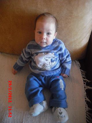 Ahojte babenky... tak náš Riško ide byť očkovaný, už má zahojenú ranu po TBC očkovaní. 😔 Inak sa toho veľmi bojím. Priplácali ste si tú 13 valentnú očkovaciu látku na pneumokoky? Aké ste mali reakcie po očkovaní? Inak moc veľa času nemám, tak len sem-tam Vás čítam a nakúkam.. Riško celé dni nespí, spí jedine v noci. Dnes zaspal o osmej a zobudil sa až o 3.36. A to ho potom beriem k sebe a cická až do rána... 🙂 Cez deň zavrie oči na 5 minút, kým som pri ňom, akonáhle ho položím do postieľky, alebo od neho odídem, je hore.. Je to taký ciciak. Zatiaľ sa ešte kojíme, mliečka mám, pribrala som hrozne, už sa len gúľam, čo pijem vineu každý deń. Ale tak hlavne, že kojím. Ak chcem, aby spal, musím si ľahnúť k nemu a zaspím tuším skôr, ako on.. taká som unavená.. Aj keď spí dobre celé noci, ja sa veľmi nevyspím, stále som hore, či už sa nezobudil a keď je pri mne, spím takým jemným spánkom, aby som ho nepriľahla.. Ale inak je zlatý.. prikladám nejaké foto..