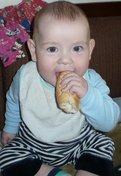 @nelustek ako mala papa chlebik,nedusi sa?my pomalicky zaciname s lepkom ale bojim sa mu dat korku do ruky aby sa nedusil