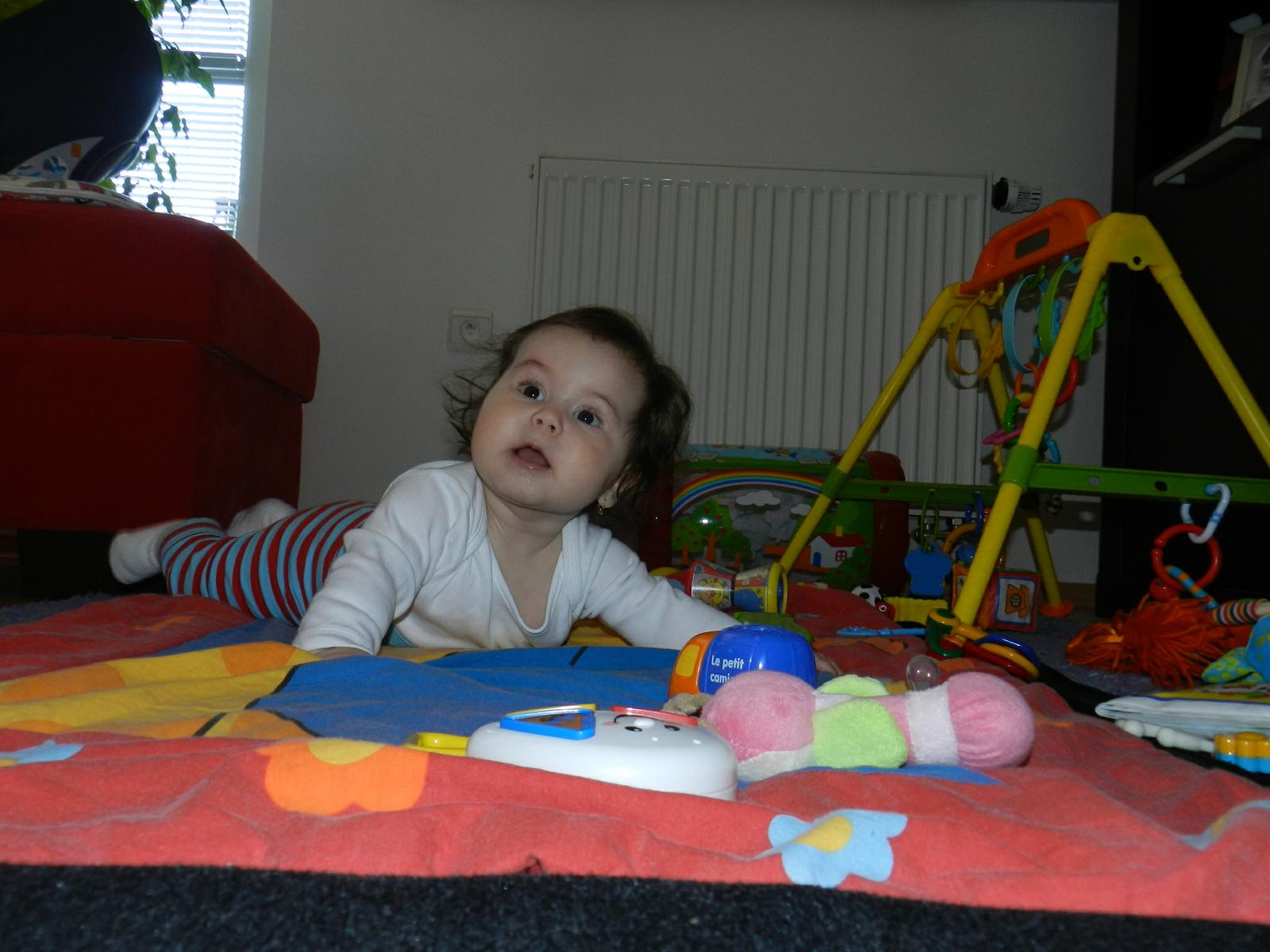 @tunzal presne aj u nás,plazenie žiadne,pretočí sa len na bruško a len by sedel , sa až čudujem ked niektoré píšu že ako sa už stavajú ich deturence,na to si asi ešte trochu počkáme,ale neva...
