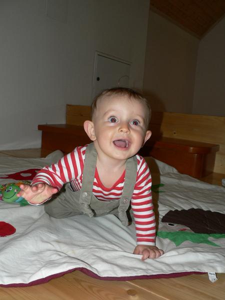 Nas by aj lozil,ale velmi sa mu smyka na parketach,po postely mu to ide alebo na kockach na zemi.
