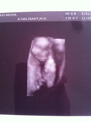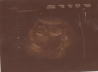 Tak sa mi podarilo naskenovať fotku zo včerajšieho uzv,troška fľakatá/naši chalani si ju podávali a obzerali budúceho súrodenca/takže ju zacapkali 😉 Na obrazovke to bolo tiež lepšie vidieť,na fotke až tak moc nie.