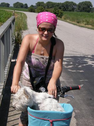 Praveže vobec nie som rizikova, pre mna je tehu prechadzka ružovou záhradkou, a prave preto mi to bicyklovanie bude toto leto velmi chybat, mi sme chodili s drahym kazdy vikend v trojici s naším havinom 40 km kam sa len dalo, a autom sa nechcem stale hore dolu presuvat, to tam budem len kysnut. Ukazem ti, ako jazdime s nasim havinom..a ludom v autach idu oci vypadnut z jamky a sa len rehocu na nas 😀