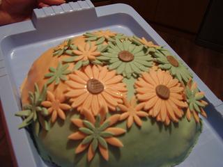 @lucula73 niekde som čítala že to možeš potrieť čímkolvek okrem toho čo obsahuje šlahačku čiže lekvar , nutela , maslo+cukor a asi aj medom tak ja som to potrela lekvarom už ked je v rolade lekvar nech je aj pod mmf a kvietky som robila vykrajovačom je to original na to som si požičala od susedky 🙂 všetky kvietky su vysekavane a gerberu som vysekla z dvoch vrstiev a ptom zlepila na seba a tak aby sa lupienky pekne striedali aby bolo vidno raz vrchny raz spodny a ten stredok hneda hmota malym kolieskom vyseknute a poradila mi suseda že s malym sitkom otlačiť mriežku aby to bolo take efektne ale mne sa to až tak nepozdavalo asi som to mala nechať kusok zaschnuť a tak trochu otlačiť ale ja som to tym akurat rozmačkla tak som potom normalne len s takxym čo mam na torty akkeby plastovy nož len urobila take otlačky