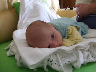 ju domka ved aj ja si maleho davam do prenosnej hojdacky ale zatial ho to bavi len par minut. aj teraz mi spinka na ruke a druhou pisem a maly sa mi v spanku chechta