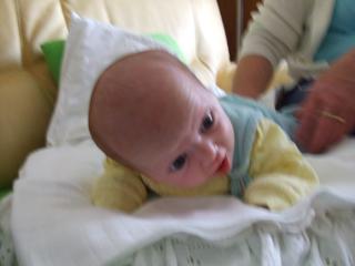 No a co sa tyka pokrokov, tak sa konecne zaujima o hrajucu kravicku a super sa zacal usmievat - tak vedome a najviac sa smeje pri kupani. Ked chce papat alebo ho tlaci brusko na grganie tak hovori " geee" a ked sa stazuje tak pouziva " bleee" sem tam vypoti " maaa" a dva razy vyprodukoval taku hatlaninu nieco ako " kakeki" ale to neviem co tym myslel 😀 😀 😀