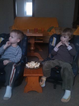 mm doniesol z auta sedačky na vyčistenie a takto to dopadlo...v telke dávali postrach Denis 😀 😀 😀 sedeli ako prikovaný..asi vedeli,že to je o nich 😀 😀 😀