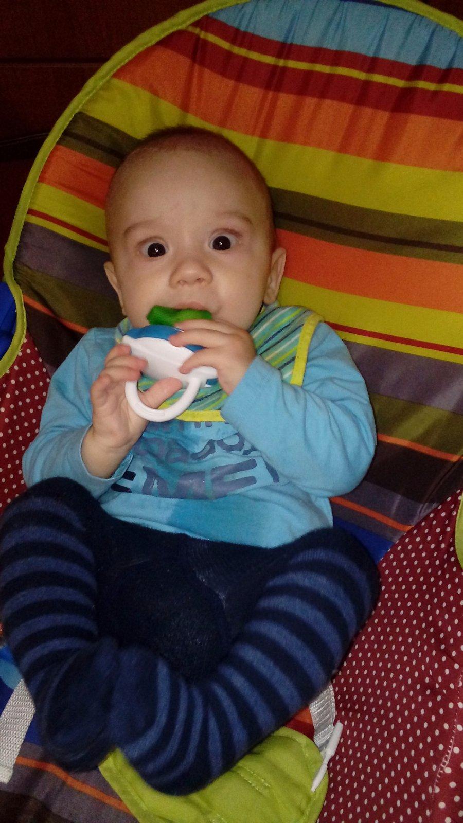 @petrikazuzka nosic ci satka ? Mne mala toez dnes bola nervna sup do nosica a spi ... Ale co sa tyka hraciek nas momentalne bavi vsetko co svieti blika a hra takze tiez idem kupovat hracky teraz lebo hryzatka a veci bez zvukov uz nas nebavia ... Mame este taku hrazdicku kde bud ked sa stlaci tlacidlo zacne hrat alebo ako mala zistila staci do nej kopnut a hra 😉 ten macko od FP je super ten zabavi no tiez to je dost tazke nna to aby to chytala ale zabavi 😉