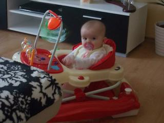 @lutia - moja je presný opak, ručučky má asi silnejšie, na tých sa ťahá a neštvornožkuje ale ručkuje, na rukách už prejde kus tak musím dávať bacha kde je, nohy ťahá za sebou 😀 😀 😀