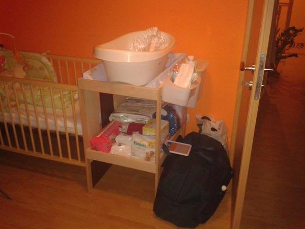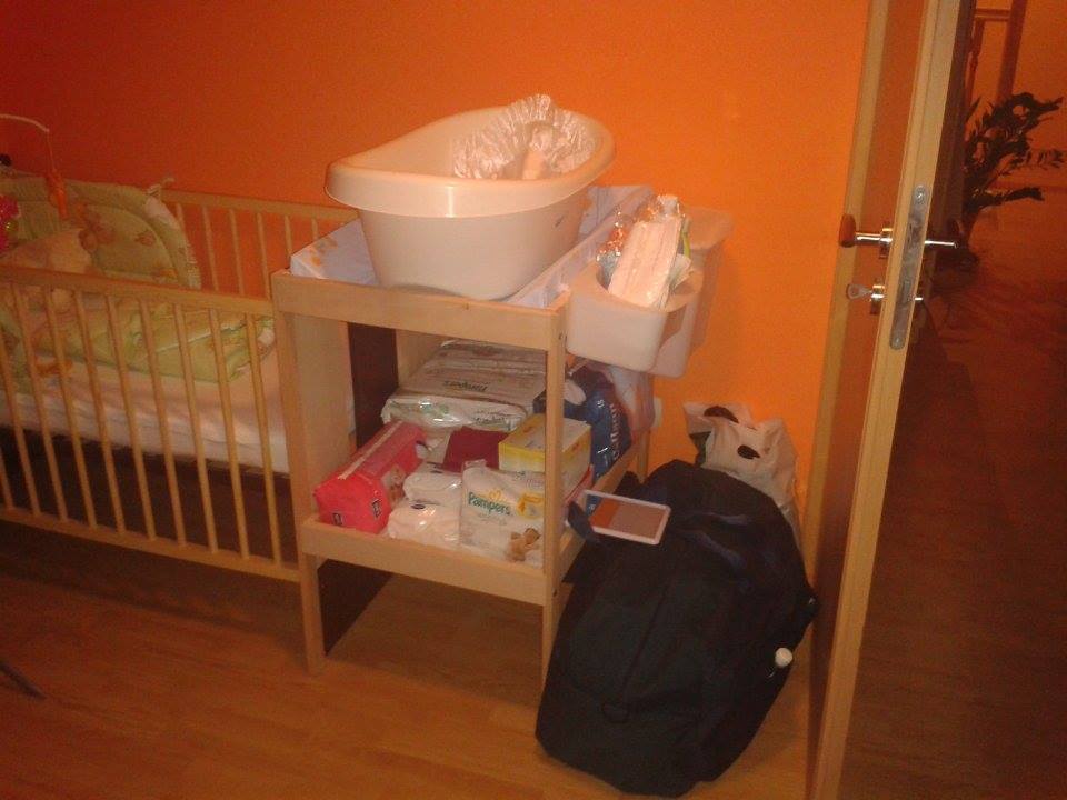 tak uz som tu cez pc, idem vam skusit pridat tie fotecky 🙂 uplne sme to cele poprehadzovali, na prvej foto mm susi handr u a moja zbierka ponoziek 😀 na druhej moje zbalenicko na sluzobku 😀 plus prebalovaci pultik, vanicka bude v kupelke 😉 na dalsej saminkove leharo a na poslednej nasa manzelska s mojim certom 😀