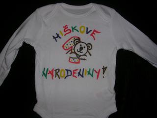 @luppita vsak zemiacky akokolvek robit mozes.ja lubim najviac s mrazenou zeleninou.dam uvarit zemiaky,nastruham do toho mrkvu,pridam mrazeny karfiol a mrazenu brokolicu a je to.to sa moze aj pomackat a je z toho zeleninova fucka,alebo len uvaris zeleninu so zemiakmi a mozes do toho aj parky pridat a parada fantazia.ja doma nemam ruru,tak nemozem zapekat,ale kludne ked je to take teple,tak dakedy aj syr na to postruham a je to. 😉 zemiacky su vdacne,tam mozes povymyslat kadeco 🙂 kadejake kombinacie. 🙂 kocky,akurat som dokoncila tvorive dielnicky u nas doma a spravila som miskovi body k narodeninam 😉 .som kupila biele body s dlhym rukavom a fixy na textil a bolo 🙂 .akoze ani z daleka to nevyzera tak krasne ako robene,ale ja nemam bubaky na to,aby som dala miskovi speci tricko na narodeniny robit a hlavne som mu chcela nieco sama vyrobit. 🙂 nie je to super krasne,ale je to robene s laskou 😉