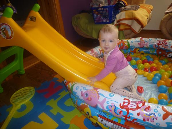 no ale dnes je výnimočne nekľudná, neviem čo jej je, či sa jej tlačia ďalšie zúbky??? vyzerá to na to, tak som zvedavá. Babku už odrovnala, tá už nevládala na druhý deŇ a dnes prišla krstná mama, tak máme čerstvú silu 😀 😀