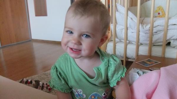 Naše novinky: koľko máme cm a kg nevieme, poradňa nás ešte len čaká,zuby nám idú ako huby po daždi, za mesiac z 0 na 4, ďalšie tri na ceste 😀 chodíme len okolo nábytku a za ruku, chýba odvaha urobiť ten prvý samostatný krok 🙂