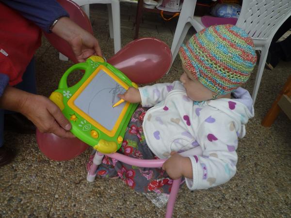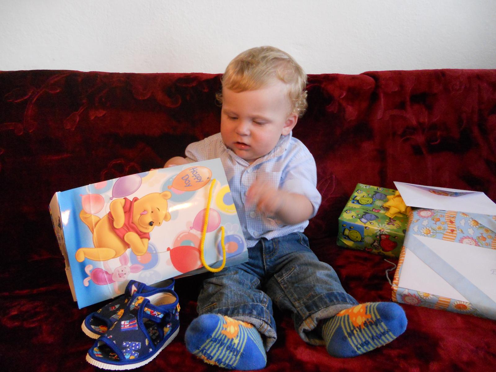 inak sme zdravi, behame o dusu,uz maly objavil jazyk,takze stale vtahuje pery,prrr-ka, pluje, vyplazuje ho, chyta si ho, no xichty neskutocne 😝 Mali sme viac oslav, ale nemam ani vsetky fotky este,tak len co bola u babky, tam som mu davala robit takuto torticku. A samozrejme darceky darceky 😀 😀