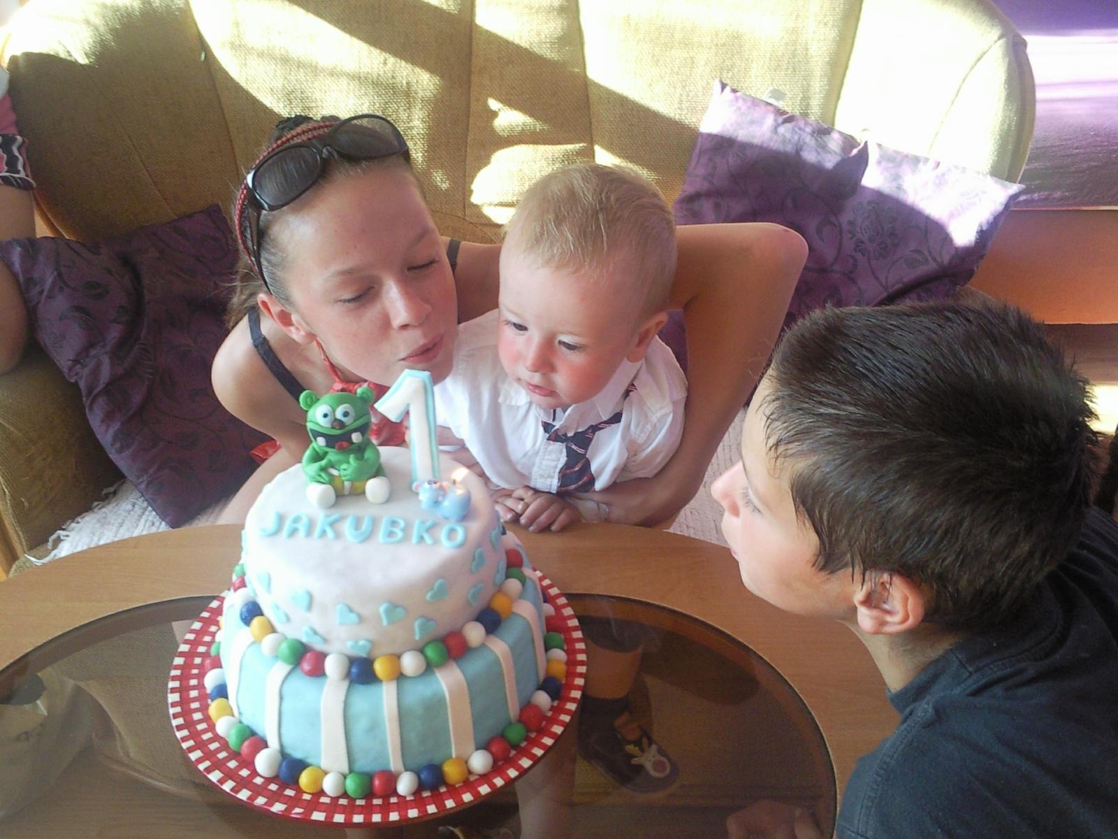 My uz mame polovicu oslavy za sebou , este jedna tento tyzden s krstnymi , teraz su na dovolenke ...foto sam s tortou Kubko nema , lebo by som ho musela na sedacku PRILEPIT !!!!!!! pokusov bolo asi 10 , zial tak tychly fotak nemame , on je stale v pohybe 😝