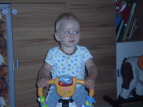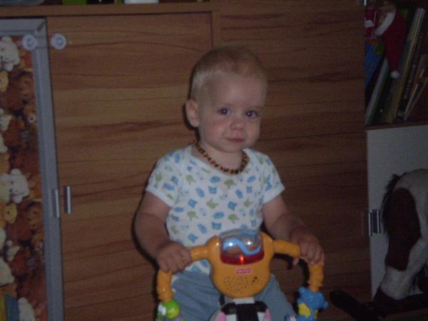 tak od dnes patrí aj Teo k ročným 🙂 chodiť ešte nechodí síce spraví pár krôčkov sám ale radčej lezie 🙂 no ale pusinku má už dosť pustenú hovorí anyu (mama), agyá (daj), gyere (poď), mama (babi), Be (to je Bea) hagyá (nechaj ma) a viac ma nenapadá :D papá už všetko dokonca už nič nemixujeme, pijeme len vodičku iné mu moc nechutí, má 10 zúbkov 🙂 a bol už 2x strihaný :D viac info ma už nenapadá snád len to že je strašný smejo a milujem kočky ako pravý chlap :D a hlavne miluje svoju ségru 🙂 a aj ona jeho :D