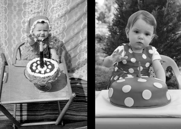 no a pridavam ja fotku co ma inspirovala k tej bodkovanej oslave 🙂, ked som mala ja 1 rok, mama ma obliekla do takych siat, tak som aj ja chcela malu tak a porovnat tie foto 🙂, nie su uplne rovnake, ja som bola na slnku tak som prizmurila oci, tak velmi nie je vidno podoba nas dvoch 🙂....