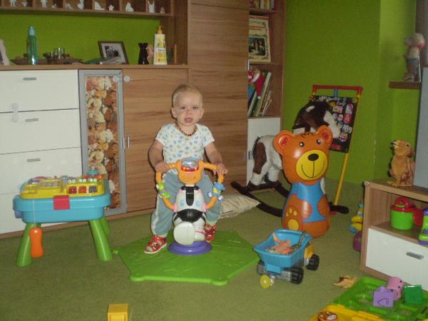 No teda vidis , ako to skresluje to foto , fakt na tom odrazadle vypada riadne velka- vysoka 🙂 , myslela som ze bude vyssia ako Jakubko ...hej , vysku ma normalnu na 1 rocik , aspon co som pozerala na velkosti od daneho mesiaca ...nas je teda vyssi a aj tazsi , vsak je chlap a ma ,,zaklad po rodicoch ,, 😖 meria 83 cm a 10,5 kg , zubkov mame uz skoro 3 mesiace 6 a nic sa dalej nedeje ...dalsie nerastu 😀