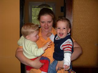 a dnes sme boli na 1 spanku od 12 do pol3 takze super..a potom dosla veeeelika navsteva Martinex s Dadikom a Jankom a velmi bolo super, aj ked ninka bola upistana.. nasa super perfis navsteva priniesla so sebou dazd tak sa nedalo ist ani von, tak sme to nejako zvladli doma.. samozrejme ze ked odisli tak prestalo prsat , tak dufam ze to tak neostane ked tu budu byvat.. hehehehh