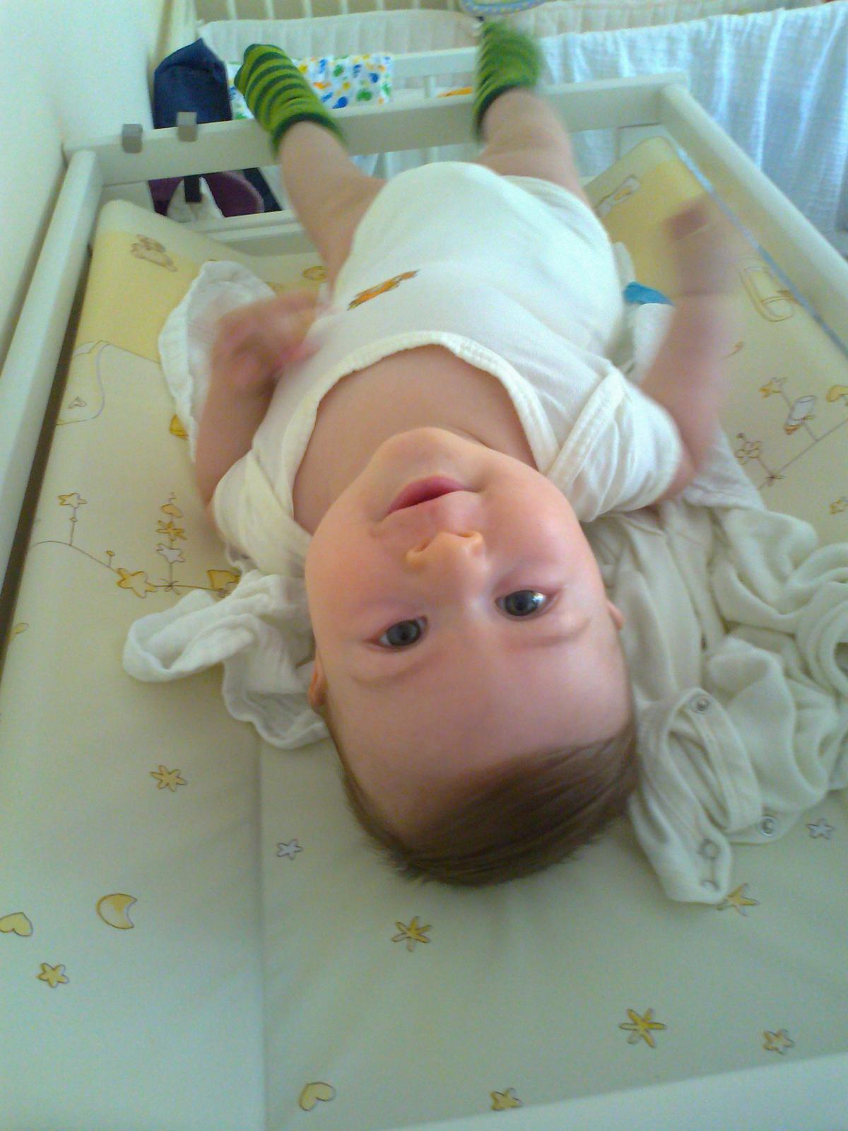 dnes sme sa boli vážiť, bez 50 g 8 kg a zúbky nám ešte ani nevidno 😉 a máme trošku trénovať dvíhanie do sedu 😉