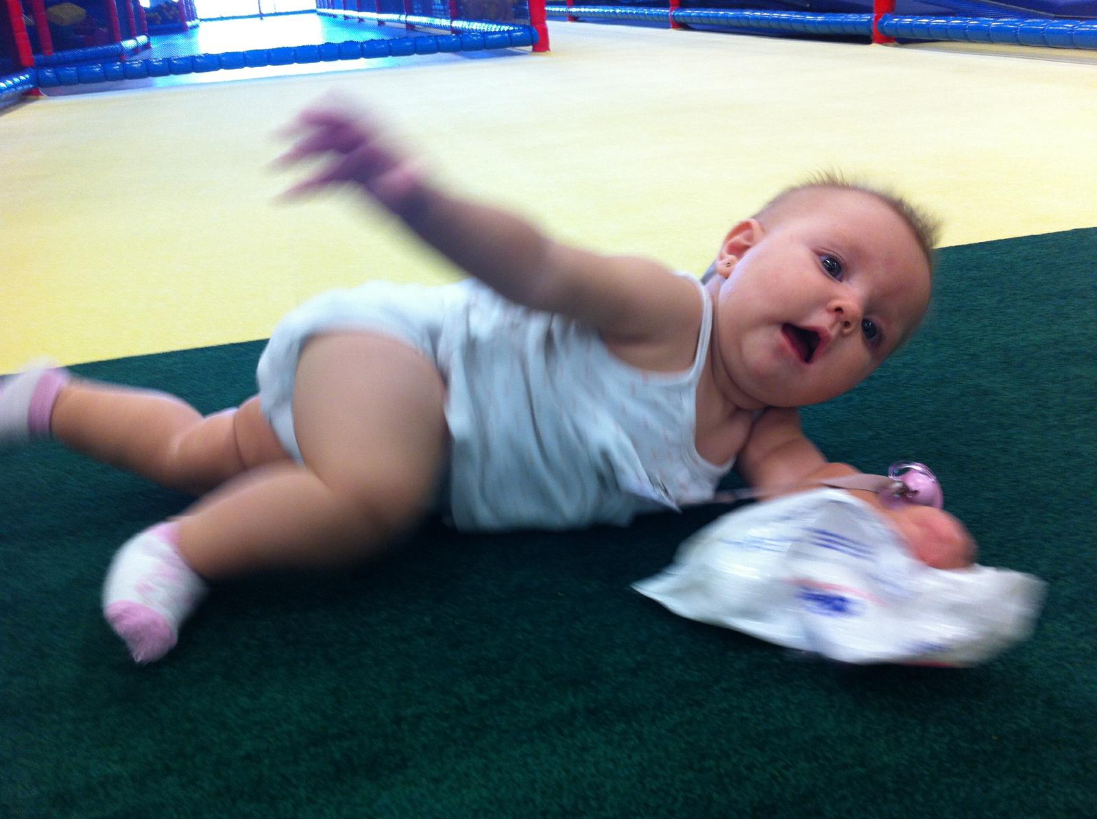 Nikolka lozí jak vojak v zakope,prejde po celom byte,všade má hračky ale kdeže,ona len cedečka chce rabovať,a zosilovač zvuku tatovi štelovať 😀 včera zjedla kusok z letaku z billy,teraz neviem čo je v akcii 😝 spava otrasne,do piateho mesiaca super a odvtedy aj desat krat za noc ma zobudi co piští a mrví sa,nevie sa uložiť,stale dokola.upratujem a varím vtedy ked ju tato alebo starká vezmú von,pri nej nemam šancu,dnes som jej na obed spravila kuracie prsia s brokolicou mrkvou zemiakom a bezvaječnymi cestovinami 🙂,poradnu mame vo štvrtok ale mám pocit že pribrala tak 200g.ona je nonstop v pohybe,všetko vyšportuje 🙂