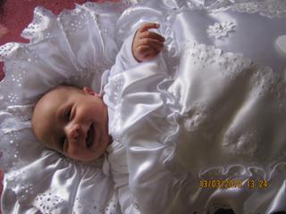... keď sa bavíte o očkovaní, my sme dcérke tiež dali preventívne panadol sirup - vysoké teploty nemávala, dalo sa to zvládnuť,uvidíme, ako na očkovanie zareaguje Matúško. Do perinky ho nebalím už 3 týždne, naposledy na krste v nej bol a to si evidentne užíval...viď foto 🙂