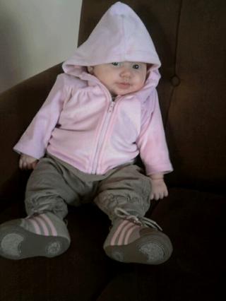nedockava 😀 😀 mala Zarka vyzera ako plutvonozec v tych teniskach 😀 ..ale je krasna..a ma rovnaku mikinu ako nasa Lejka 🙂