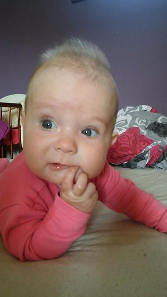 Ahojte dievčatá, tak boli sme na poradni pred dvoma tt. a máme 6900 gr a 63cm,myslím že ta váha už zase stúpla. Začali sme prikrmi 3 deň mrkva, zajtra tretí deň zemiacik. Tvári sa kadejako, neni to mamino mliecko... aj my máme už jeden zub a dasienka zdurene. Hryzie všetko navôkol,až sa trasie keď ide na vec, niečo ako potrebujem dávku...smejem sa ale musí ju to tam tlačiť.