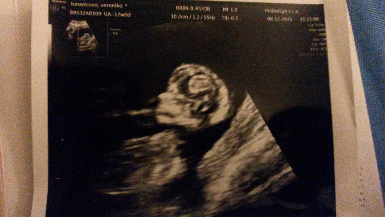Ahojte, tak pridavam aj ja foto 12 tt a bábätko ma nieco vyse 5 cm 😃. Je to pohodak, cely cas si takto vegetilo ani sa nepohlo 😃. Vsetko je v poriadku. Tesim sa, lebo pri dcerke bol stale nejaky problem. Citim sa oveľa lepsie, minimálne nevolnosti a unava. Prajem vam krasne Vianoce, my to oznamime rodine pri stromceku 😃😊🎉. Tak sa tesim 😊 uzite si sviatky, mile tehulky .... 😄